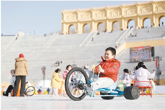 近日,宁夏银川市出现持续降温天气,市民纷纷外出体验冰雪文旅项目,享受“塞上湖城”的冰雪乐趣。 新华社记者 王鹏 摄