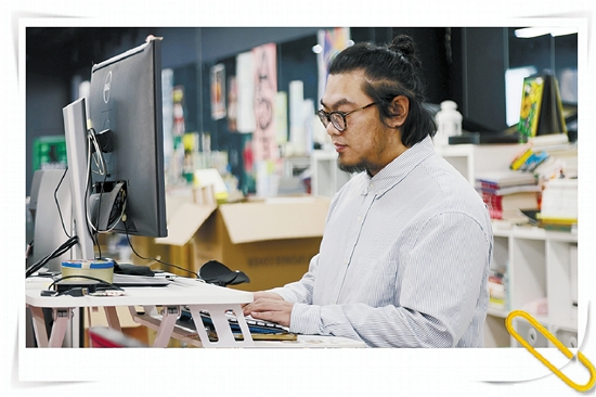 章龙吉是个很有个性的设计师,架着一副赛璐璐花色眼镜,松散的长发在脑后束成利落的高马尾;说话时目光凝定一处,话语随性而出,整个人率性又随和。在他这间不大的设计工作室里,团队成员彼此信任、相处融洽,时而相谈甚欢、打趣说笑,时而沉心专注、探讨设计方案,日复一日为设计倾注心血,让创意落地生花。
