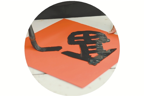 学生写“福”字