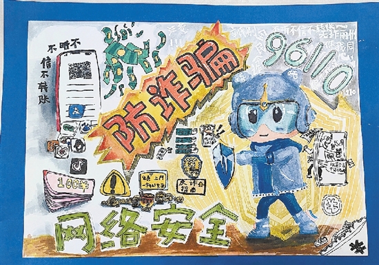 学生们的作品形式多样,内涵丰富。短视频生动演绎诈骗案例,书法绘画笔墨传神,手抄报图文并茂,童谣日记朗朗上口。这些充满童真巧思的作品,将“个人信息不外露”“陌生链接勿点击”等反诈知识融入其中,发挥了良好的科普教育作用。