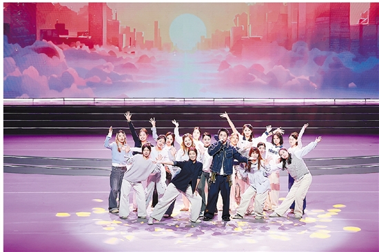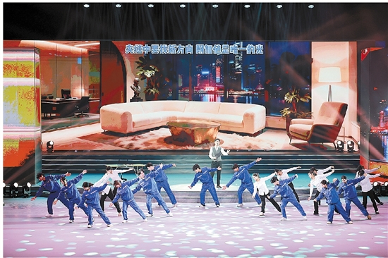 当晚亮点之一永康“钢铁侠”战队——篮球、足球两支队伍首次合体登台,铿锵演绎原创歌曲《五金战魂》。队员们以昂扬姿态唱响五金之都的拼搏精神,点燃全场热情,赢得观众经久不息的掌声。音乐短剧《五金新生代·青春链曲》、女子群舞《根深叶茂》、四川盘子《年年有鱼》等节目同样精彩纷呈;非遗展演《千年方岩·非遗华章》则以沉浸式手法呈现永康文化瑰宝,令人耳目一新。