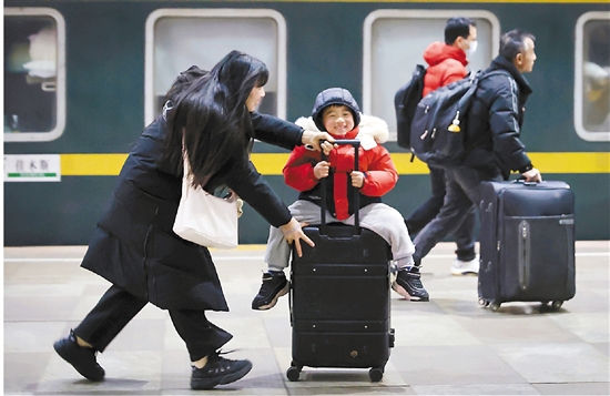又是一年春运,山河行走间铺展团圆画卷。在这流动的宏大图景里,扣人心弦的笔触藏于每个具体而鲜活的表情里。亿万鲜活的春运表情,共同绘就了流动中国最美的模样。图为旅客在南京火车站乘车出行。 新华社发(苏阳 摄)