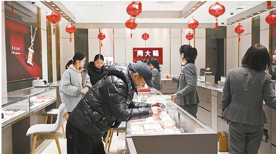 老凤祥推出的飞天马系列藏宝金饰品备受顾客青睐,尽管当前金价处于高位,但前来咨询、购买的顾客依旧络绎不绝。