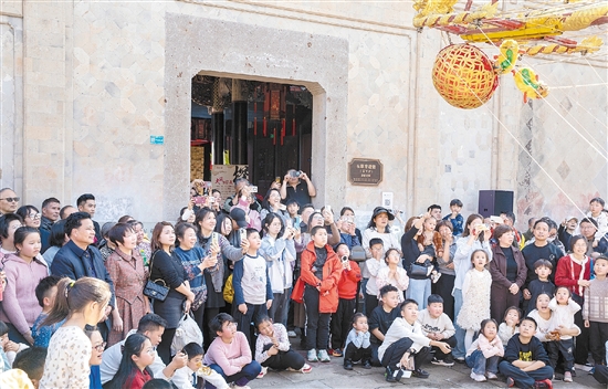 大司巷特色文化街区,市民观看《九狮图》表演