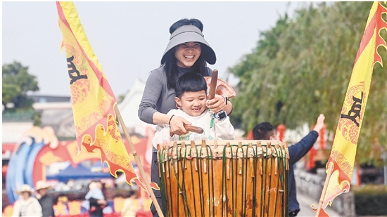 广西钦州:看戏击鼓 体验传统文化