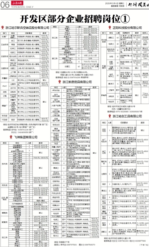 永康日报 经济开发区 00006 开发区部分企业招聘岗位① 2026-03-04 永康日报2026-03-0400006;永康日报2026-03-0400007;永康日报2026-03-0400010;永康日报2026-03-0400013;永康日报2026-03-0400022;永康日报2026-03-0400023;永康日报2026-03-0400024;永康日报2026-03-0400025;永康日报2026-03-0400009;永康日报2026-03-0400014;永康日报2026-03-0400015;永康日报2026-03-0400016;永康日报2026-03-0400017;永康日报2026-03-0400027;永康日报2026-03-0400008;永康日报2026-03-0400011;永康日报2026-03-0400012;永康日报2026-03-0400018;永康日报2026-03-0400019;永康日报2026-03-0400020;永康日报2026-03-0400021;永康日报2026-03-0400026;永康日报2026-03-0400028 2 2026年03月04日 星期三