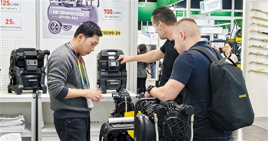 金华市海杰进出口有限公司聚焦锂电电动工具,主打绿色、轻便、高效的新一代产品。该公司品牌经理郭文焱介绍,企业已连续多年参加科隆展会,本次展会重点推广当下主流的锂电系列产品,希望让更多海外客户认识中国制造、永康制造。展会期间,企业将深入调研欧洲市场需求、用户情况与消费偏好,把一线市场信息带回国内,进一步优化产品研发与生产,持续拓宽欧洲市场。