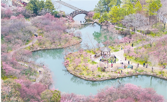 3月8日,游客在江苏省扬州市瘦西湖风景区游玩。春意渐浓,各地春花陆续绽放,神州大地春景迷人。 新华社发(任飞 摄)