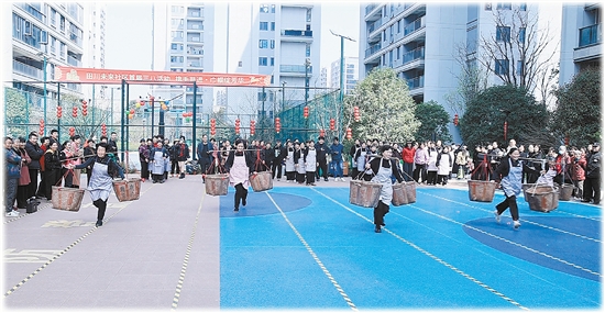 活动在气势昂扬的女子舞龙中火热启幕,锣鼓铿锵、龙身腾跃,点燃全场热情。为拉近彼此距离、重温邻里温情,现场设置破冰互动游戏,姐妹们默契配合,久别重逢的情谊迅速升温。随后,舞蹈、诗朗诵、婺剧演唱等精彩节目轮番上演,掌声、喝彩声此起彼伏,将喜庆祥和的氛围推向高潮。