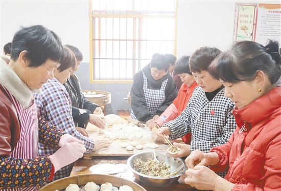 3月8日,石柱镇塘花村女性村民们一起动手做包子。
