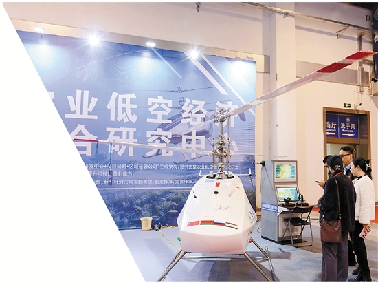 在农业低空经济联合研究中心展位上,一台旋翼直径超5米的农业无人机成为焦点。据介绍,该装备基于成熟的通航无人机技术研发,创新性换装汽车动力单元,以成熟的低成本汽车发动机替代昂贵的航空发动机,并通过整流罩、油箱与主体结构的一体化设计,实现降本增效。