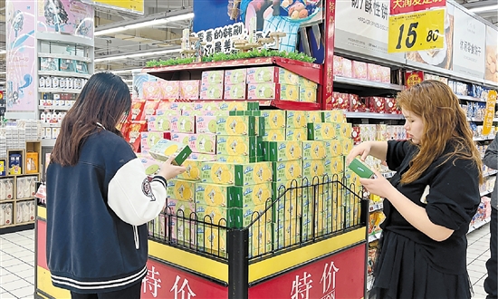 货架旁,正在选购饼干的市民翟静静告诉记者:“这个包装看着就很有春天的感觉。饼干也是粉粉嫩嫩的,又是少见的新口味,价格还不贵。我准备买一盒春糯豆香味的尝尝,吃吃看是不是像包装上说的,有红豆青团的味道。”