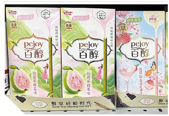 樱花粉荔鸡尾酒味注心饼干、芭乐青提味可可脆卷、樱花味果冻……3月21日,记者来到大润发超市零食区,没花多少时间就寻觅到了“春季限定”零食的身影。这些零食大多采用清新淡雅的包装,且外包装上都醒目地标注了“春季限定”“季节限定”“春日限定”等字样,辨识度十足,让人一眼就感受到浓浓的春日气息。