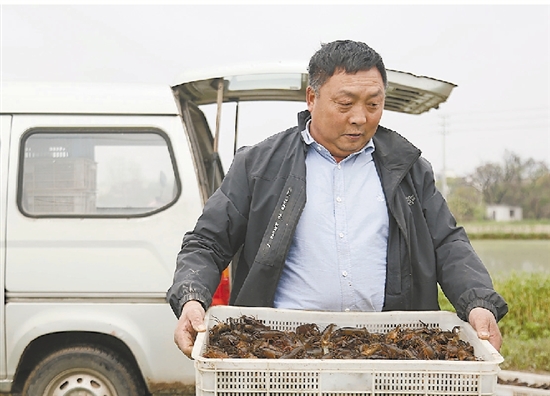 眼下正是虾苗投放的关键期。3月28日,在西城街道排塘村一处稻虾养殖基地,种粮大户趁着晴好天气,将一筐筐活蹦乱跳的虾苗投放到稻田中。据了解,每亩田投放80公斤左右的虾苗,这批小龙虾预计4月底上市。 融媒记者 池欣桦 陈凯璐