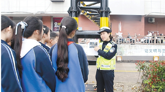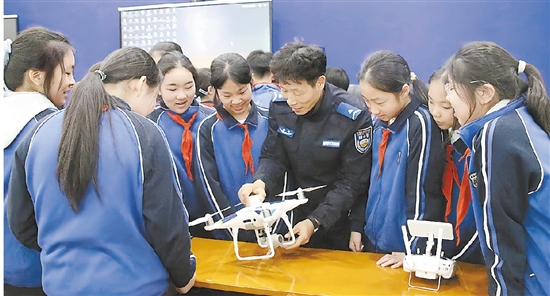 在创新工作成效展示环节,交警为学生们准备了一场趣味十足的“交管科技盛宴”,无人机空中巡逻喊话、事故快处,让学生们直观看到科技为交通管理带来的便捷与高效;货车右转辅助系统的介绍与实操展示,更是让学生们惊叹于市公安局交管工作的创新性和执行力。