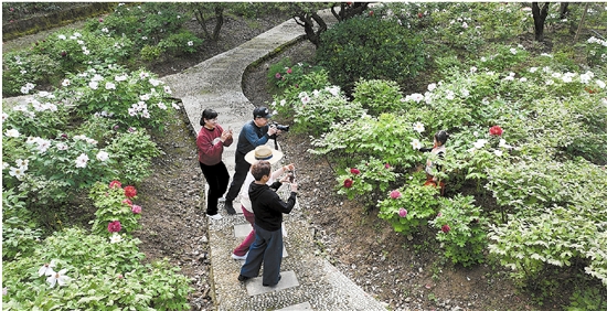 3月31日,前仓镇盘龙谷的牡丹园吸引了众多市民前来赏花。放眼望去,红色的状元红,白红相间的二乔,紫色的葛巾紫,还有首案红、蓝田玉等不同种类的牡丹争奇斗艳。据了解,园内的牡丹有60多个品种,1700多株,预计最佳赏花期还有一两个星期。 融媒记者 卢斌 摄