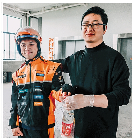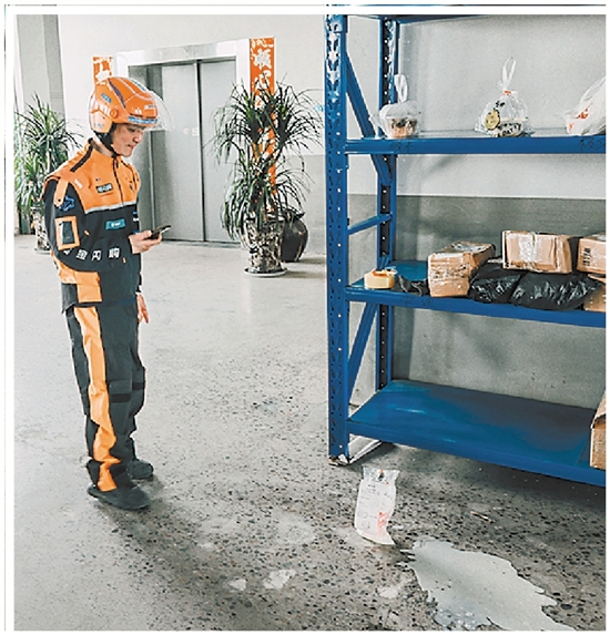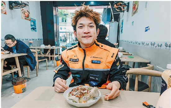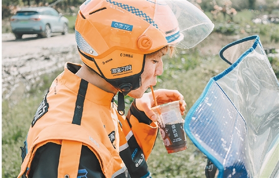 石玉翱正在配送外卖