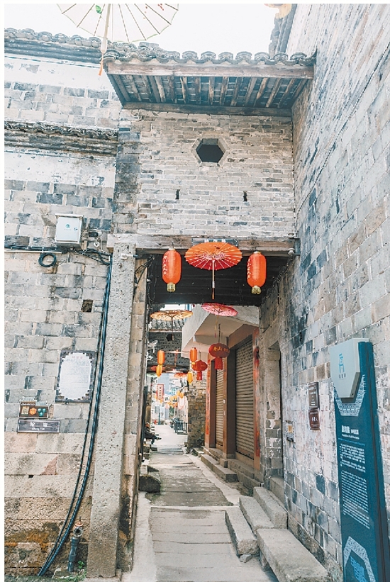 而“空防”的核心,便是被村民称为“炮楼”“阁楼”的骑街楼。“这些骑街楼前后各有两个瞭望口、四个枪眼,精准对着街面和巷口,户户相通从村东连到村西,把老房子都连在了一起。”黄光荣站在骑街楼下介绍,平时这里是村民串门、放哨的通道,遇盗匪时,大家能通过廊道互相增援,甚至直接撤到村后的山脚。站在骑街楼的瞭望口向外看,整个古巷的动静尽收眼底。古人的巧思令人叹服。
