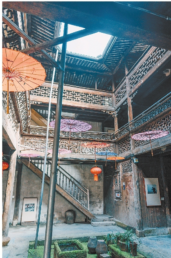 “站在这楼上,整个古村的青瓦白墙都能看到,山水挨着房子,这景色独一份。”黄光荣指着三楼的观景视野说道。
