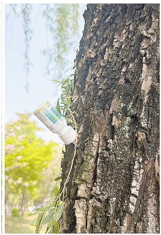 为从根源解决问题,市园林管理处采用软硬兼施的组合拳——为柳树打“抑制针”、洗“高压澡”。所谓“抑制针”即用赤霉素类药物注射树干,抑制花序产生,从源头减少飞絮。树干注药当年注射、次年见效,目前,我市已完成柳树、白杨树、梧桐树共计300余株的防治。针对已形成的飞絮,该处还在飞絮高发时段开展药物喷洒作业,利用药物中的聚合高分子材料特性,使飞絮凝聚下落,效果立竿见影。