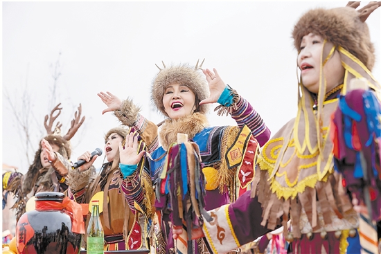 4月10日,2026“趣”佳木斯·喊江节在黑龙江佳木斯市启航广场启幕,赫哲族演职人员高喊“开江啦”。“喊江节”即在开江季将江水“喊醒”,祈祷百姓安康、风调雨顺。本届“喊江节”融合赫哲族渔猎祭祀文化,是集文化仪式感、民俗沉浸感、现代消费体验于一体的综合性春季文旅活动。 新华社记者 张涛 摄