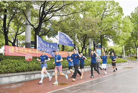 4月12日,在第十一个全民国家安全教育日即将来临之际,永警跑团队员们沿着三江六岸开展主题跑步活动,向沿途市民传递国家安全理念。