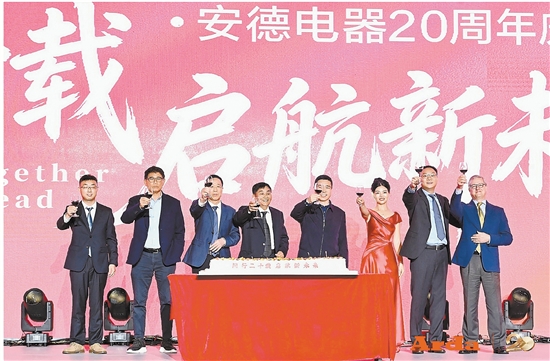 庆典尾声,安德电器正式发布了未来10年的宏伟发展蓝图。下一个5年,销售规模翻番,努力实现IPO资本化里程碑;放眼未来10年,以30亿元到50亿元为目标,将安德电器打造成为全球具有广泛影响力的厨电制造企业。“这个目标,宏伟而艰巨。但只要有在座各位的支持,我坚信,我们一定能够实现。”胡忠怀的话语掷地有声,赢得了全场热烈而持久的掌声。他再次向所有同行者致以最深的谢意:“因为有你们,安德才有过去20年的精彩;因为有你们,安德必将迎来更加辉煌的下一个20年。”